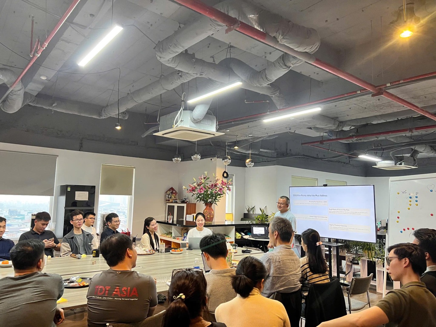 As the first half of 2025 comes to a close, it's the perfect time for us to pause and reflect on what we’ve achieved, openly address ongoing challenges, and set a clear direction for the road ahead. On the morning of June 14, 2025, TDT held its Mid-Year Strategic Meeting, with the participation of department heads and key management members. During the meeting, we focused on two core topics: 1. Review of OKRs for the first six months and establishment of OKRs for the remaining six months of the year - Function/DIV teams reviewed their progress over the past six months, highlighting notable accomplishments while also acknowledging unfinished goals. The gaps were attributed to changes in strategic priorities, limited resources, and operational obstacles. - From this review, the CEO presented a refined set of OKRs for the second half of the year - placing emphasis on improving internal efficiency, accelerating AI-driven initiatives, and strengthening team cohesion across the organization. 2. Discussing key focus areas for 2025 - The discussion atmosphere was open, energetic, and constructive. Managers shared valuable insights on a variety of pressing topics, including: streamlining cross-functional collaboration, retaining and developing core talent, integrating technology into operations, and cultivating a sustainable and adaptive company culture. - More than just a numbers review, the meeting was an opportunity to align perspectives, strengthen mutual understanding, and build a united vision for the months ahead. With a spirit of unity, initiative, and innovation, the TDT team is fully equipped to embrace a dynamic and breakthrough second half of 2025. -